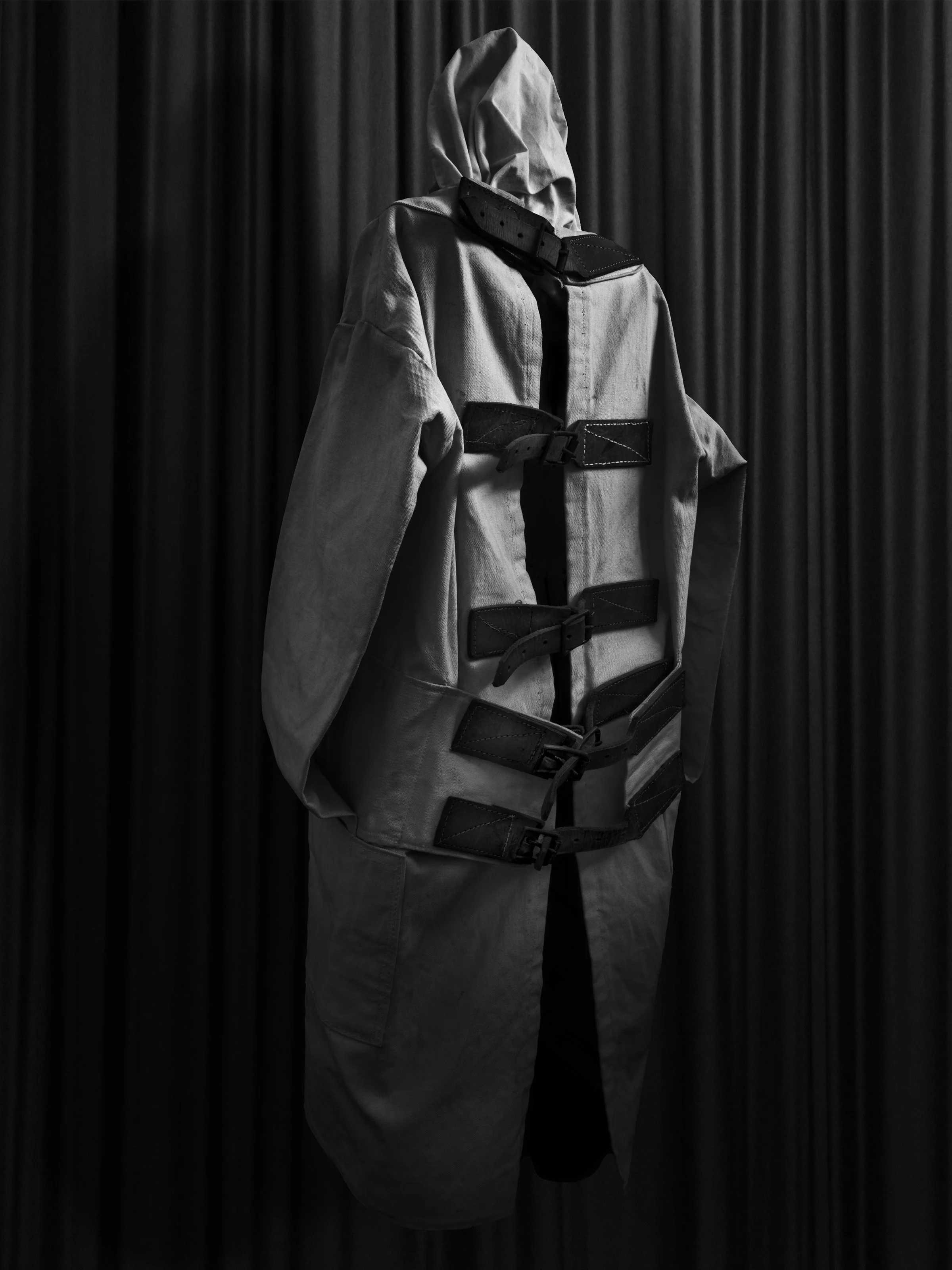 N: It’s strange –yet comforting – you say that. In many respects, the jackets were the ‘fulcrum’ of the show: they were printed almost at a 1:1 scale in an attempt for the viewer to feel themselves in them, to feel or suggest the horror of being forced to wear such constructions. The correspondence of some of the inpatients suggests the great disbelief in being ‘incarcerated’ there in the first place, let alone being restrained in such a manner. The ethical problem of ‘aestheticising’ - or representing - such objects is one that I haven’t quite fully resolved, in the same way that I haven’t processed the visual beauty of 9-11 against the seismic horror of its mortal impact. It’s a condition central to photography and one that I am both uneasy with and yet – in this case – an abettor.